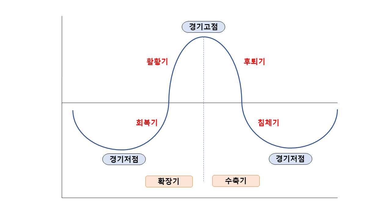 경제는 변함없이 잘 나가거나 침체 상태에 놓이지 않고 호황기와 불황기를 반복적으로 거치면서 변동합니다. 이처럼 국민경제 전체의 활동수준이 반복적인 규칙성을 가지고 변동하는 것을 경기변동이라고 합니다.